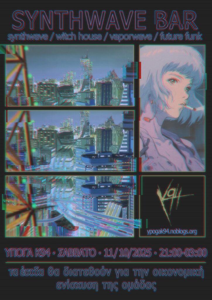Συνεχίζουμε το Σάββατο στις 11 του Οκτώβρη, με synthwave, witch-house, vaporwave και συγγενείς ηλεκτρονικές μουσικές στην Υπόγα, από τις 21:00 εως τις 03:00.